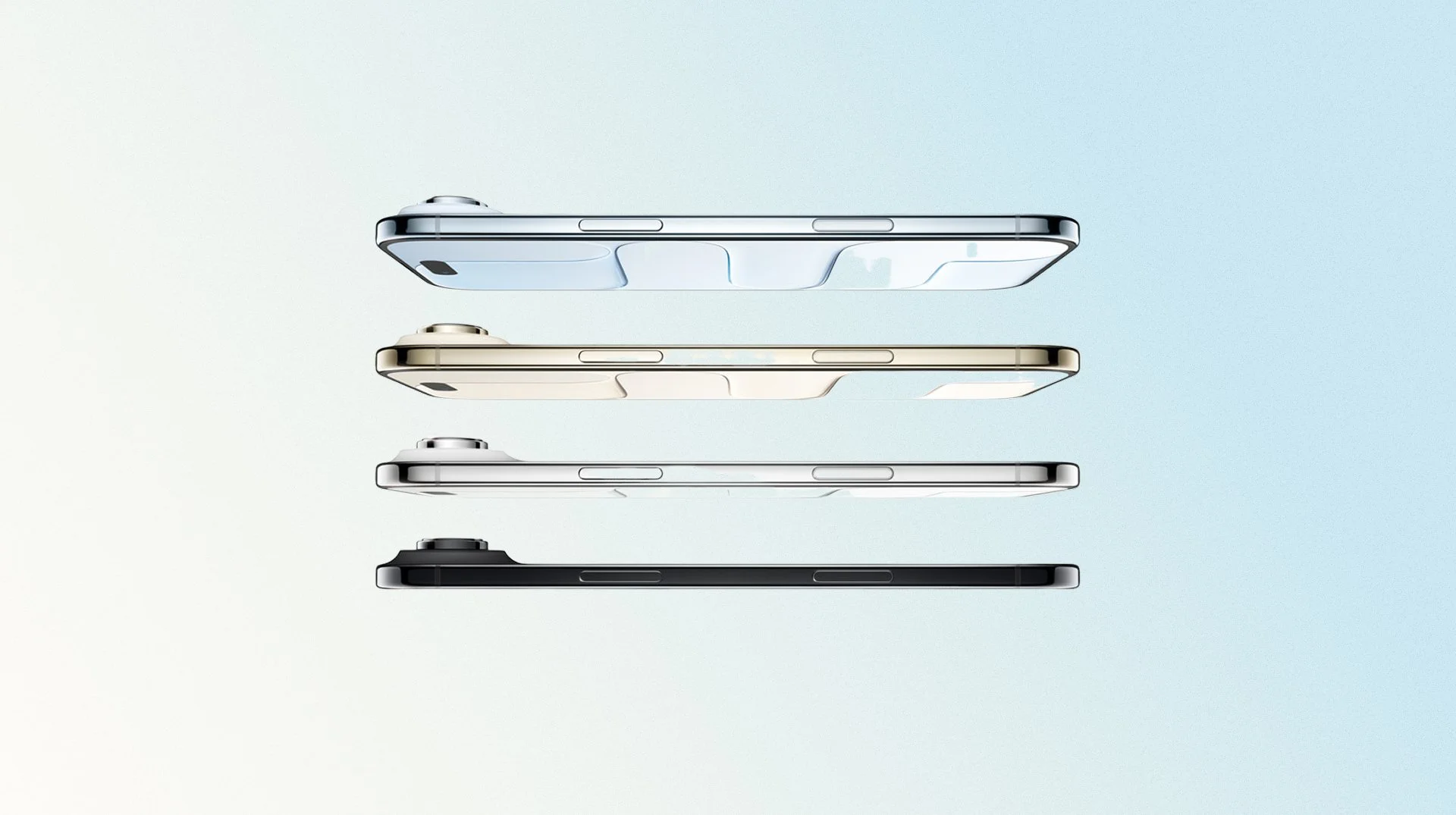 iPhone Air in all colours: sky blue, light gold, cloud white, and space black.